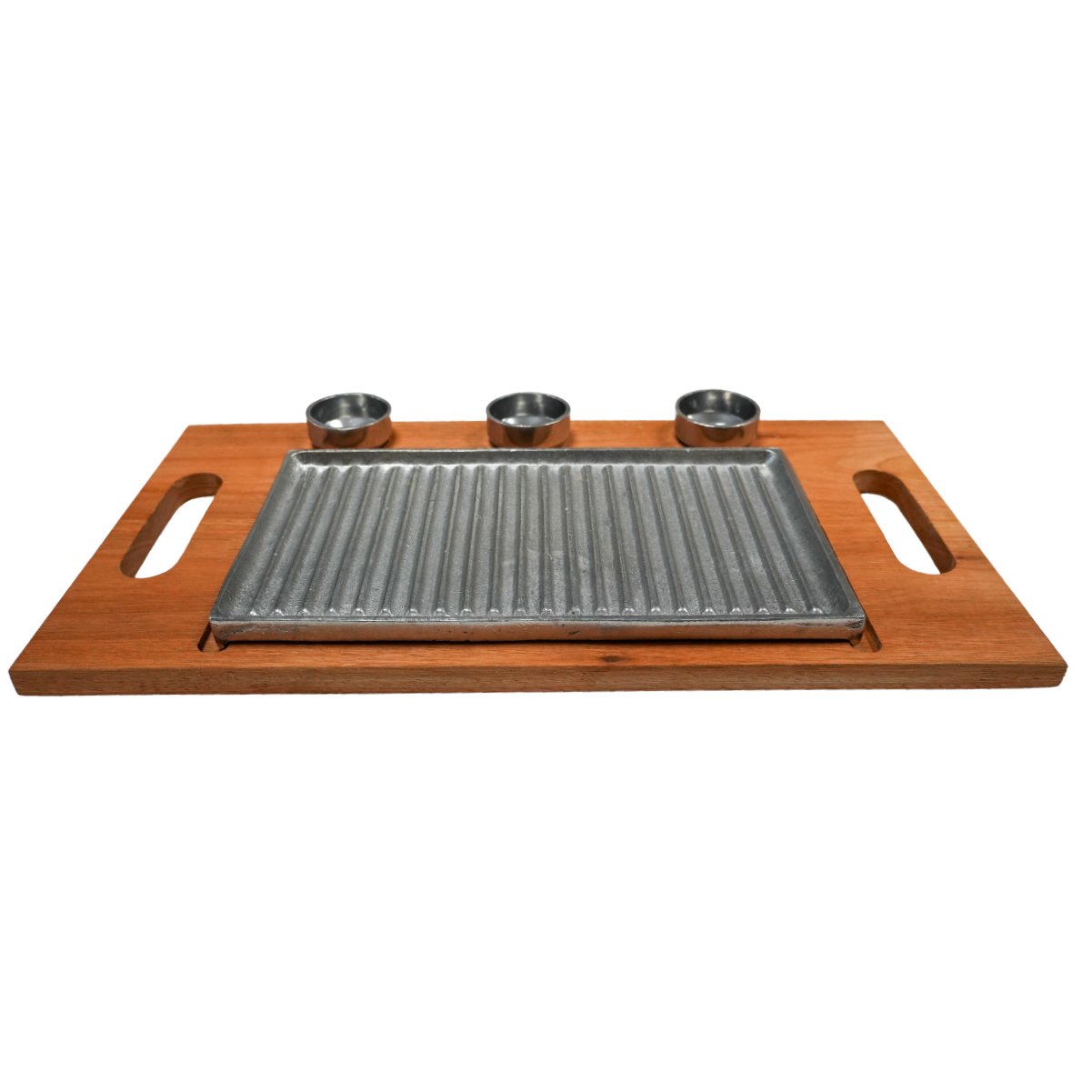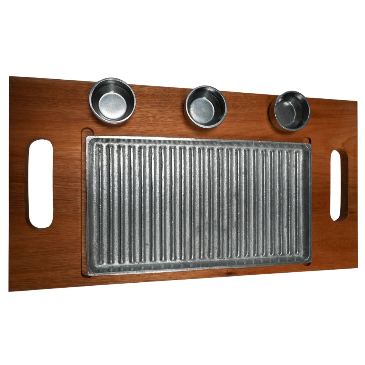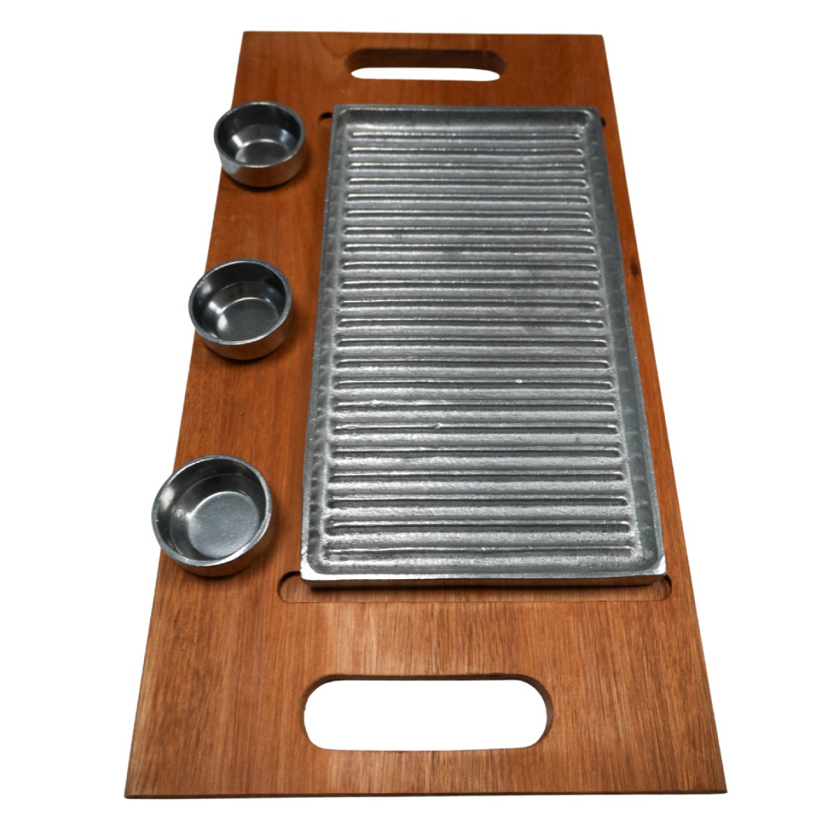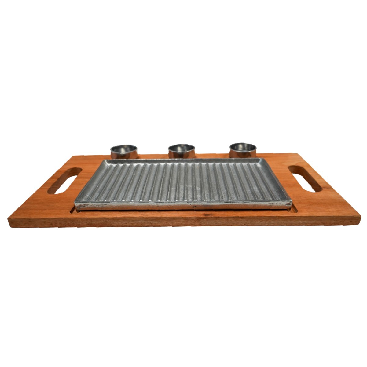 La Tabla Parrillera 3 Dips es el complemento perfecto para tus reuniones alrededor de la parrilla. Elaborada con madera de eucalipto de primera calidad y una bandeja de fundición resistente, esta tabla te ofrece un diseño versátil y funcional para preparar y servir tus platos favoritos con estilo. Con tres compartimentos especialmente diseñados, podrás presentar una variedad de salsas y dips para acompañar tus deliciosas parrilladas.