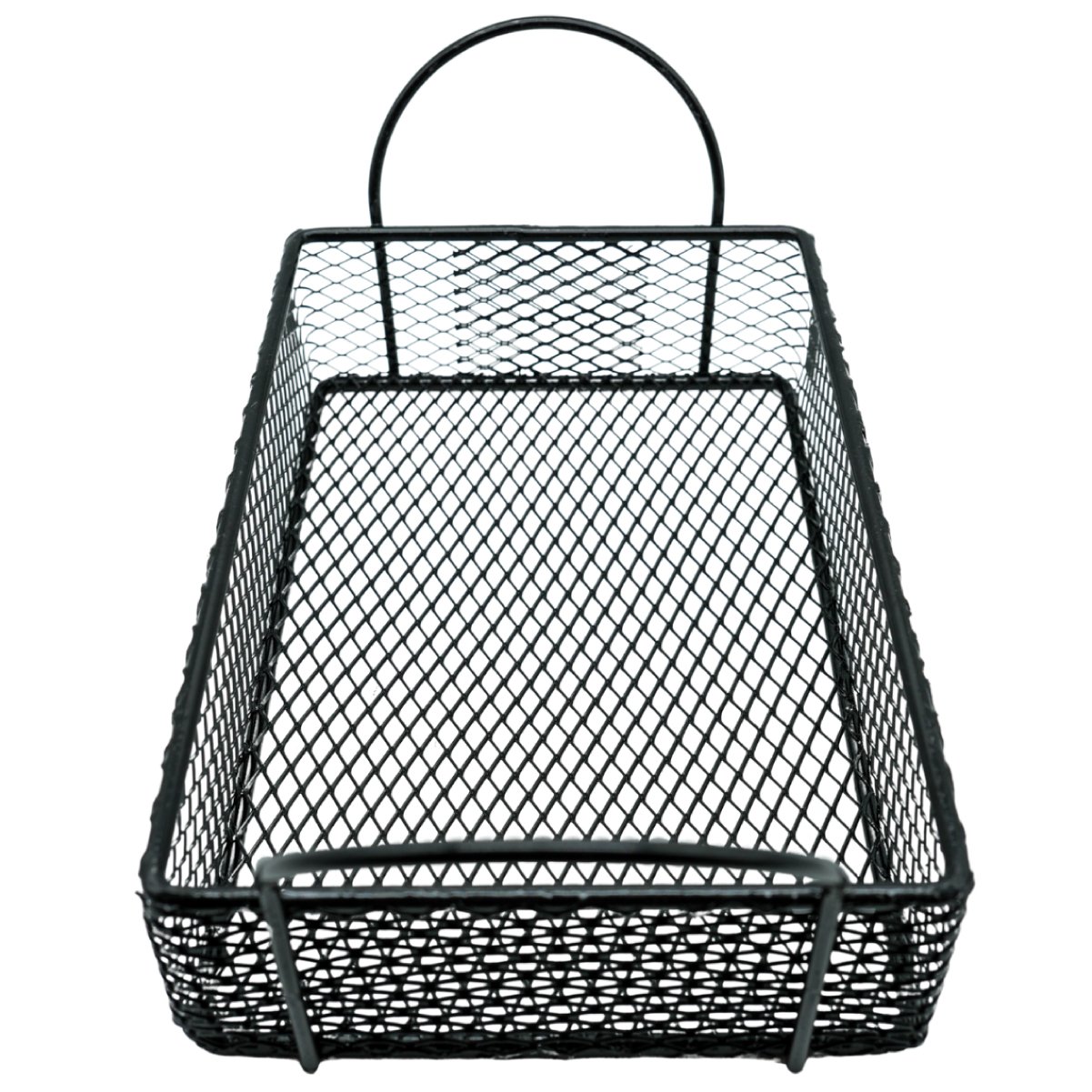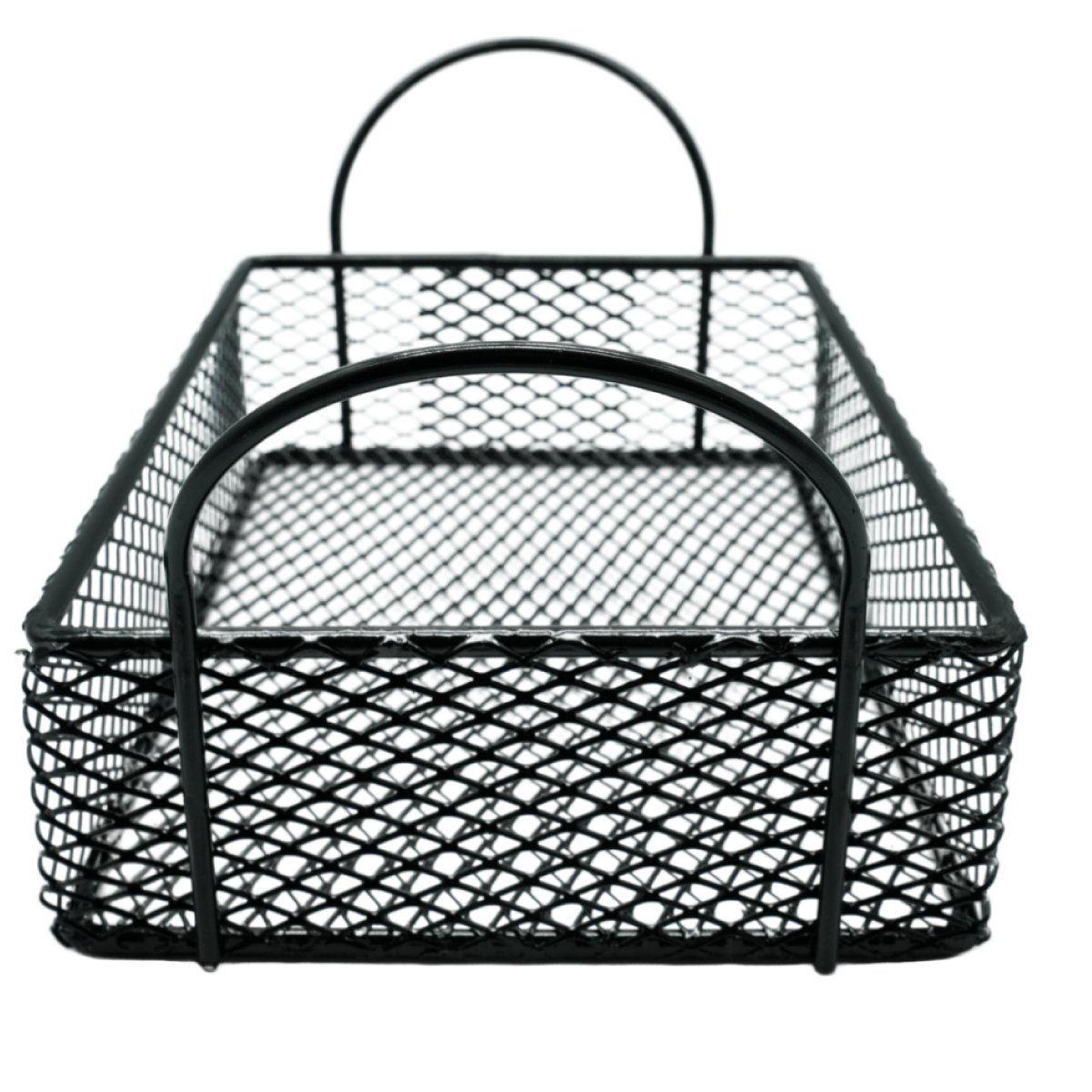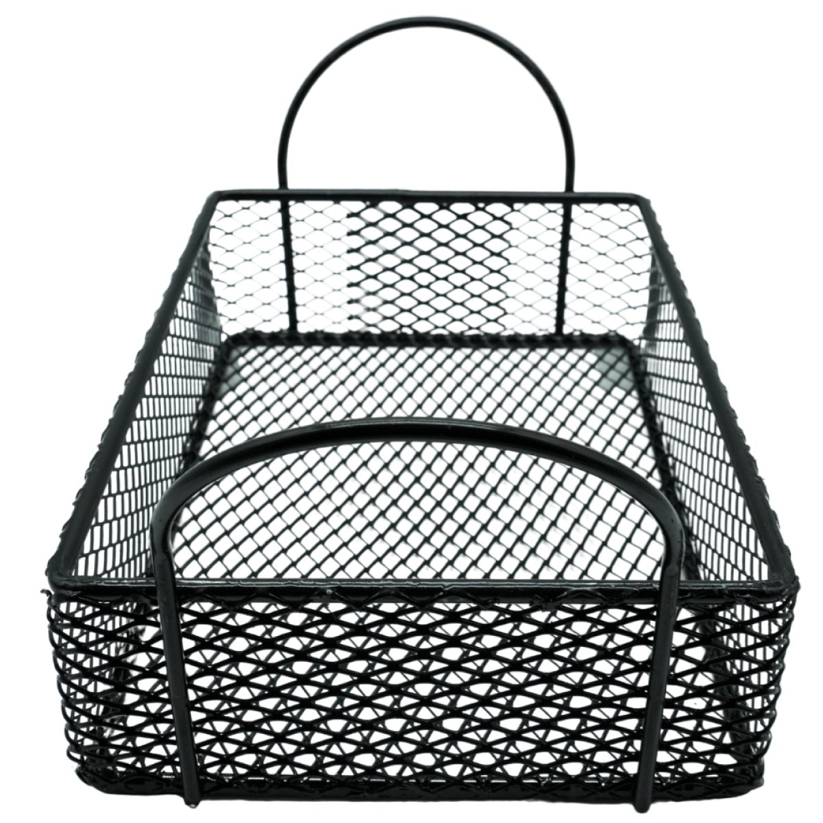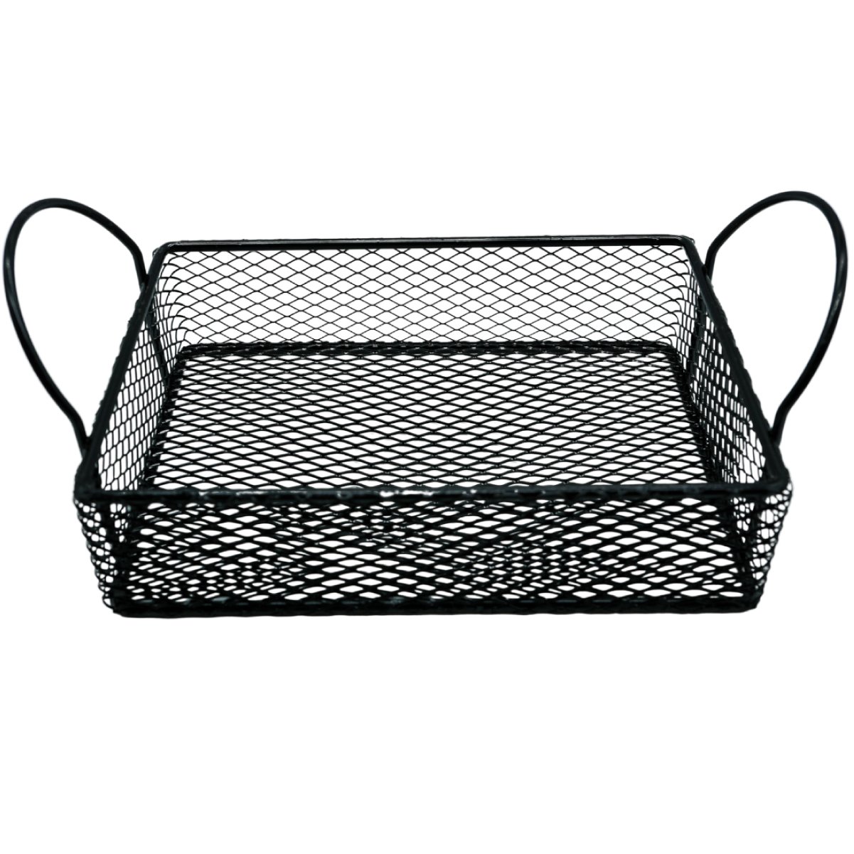 Canasto de acero pintado en negro, ideal para presentaciones gastronómicas modernas. Su diseño con dos manijas facilita el manejo y lo convierte en una excelente opción para servir papas fritas, finger food o acompañamientos con estilo.