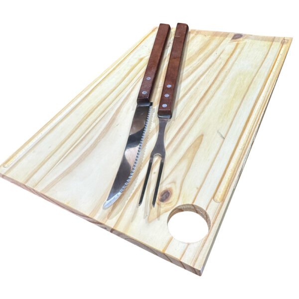El Combo Chacra que incluye la tabla con Kit Parrillero Premium es ideal para los amantes del asado que buscan un toque de estilo y funcionalidad en su cocina. Fabricada en pino curado de alta resistencia, esta tabla es duradera y versátil, mientras que el kit parrillero premium incluye utensilios de calidad superior para facilitar cada corte y preparación.