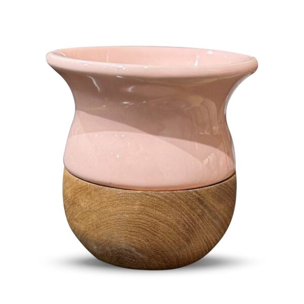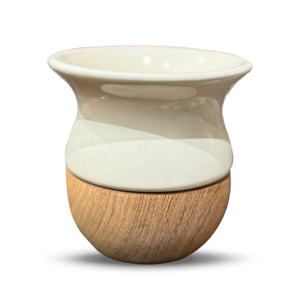 Confeccionado con cerámica de calidad encastrada en una base de madera de calden, este mate combina la tradición artesanal con la durabilidad moderna. Con aproximadamente 10-11 cm de altura y 9 cm de diámetro, es perfecto para saborear tu mate favorito en cualquier momento del día.