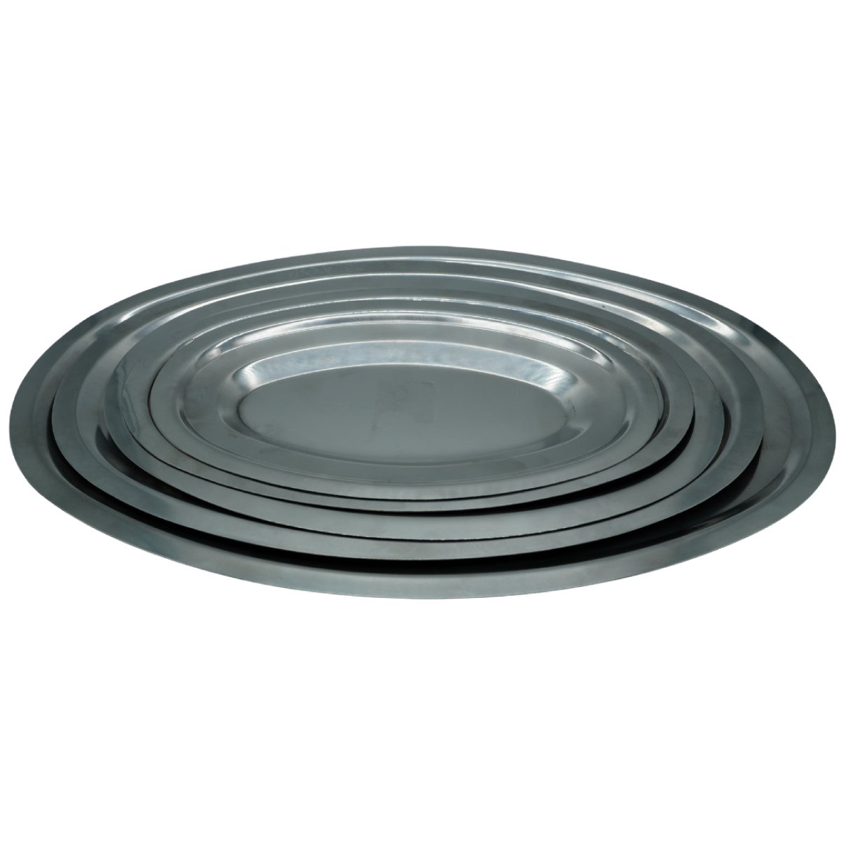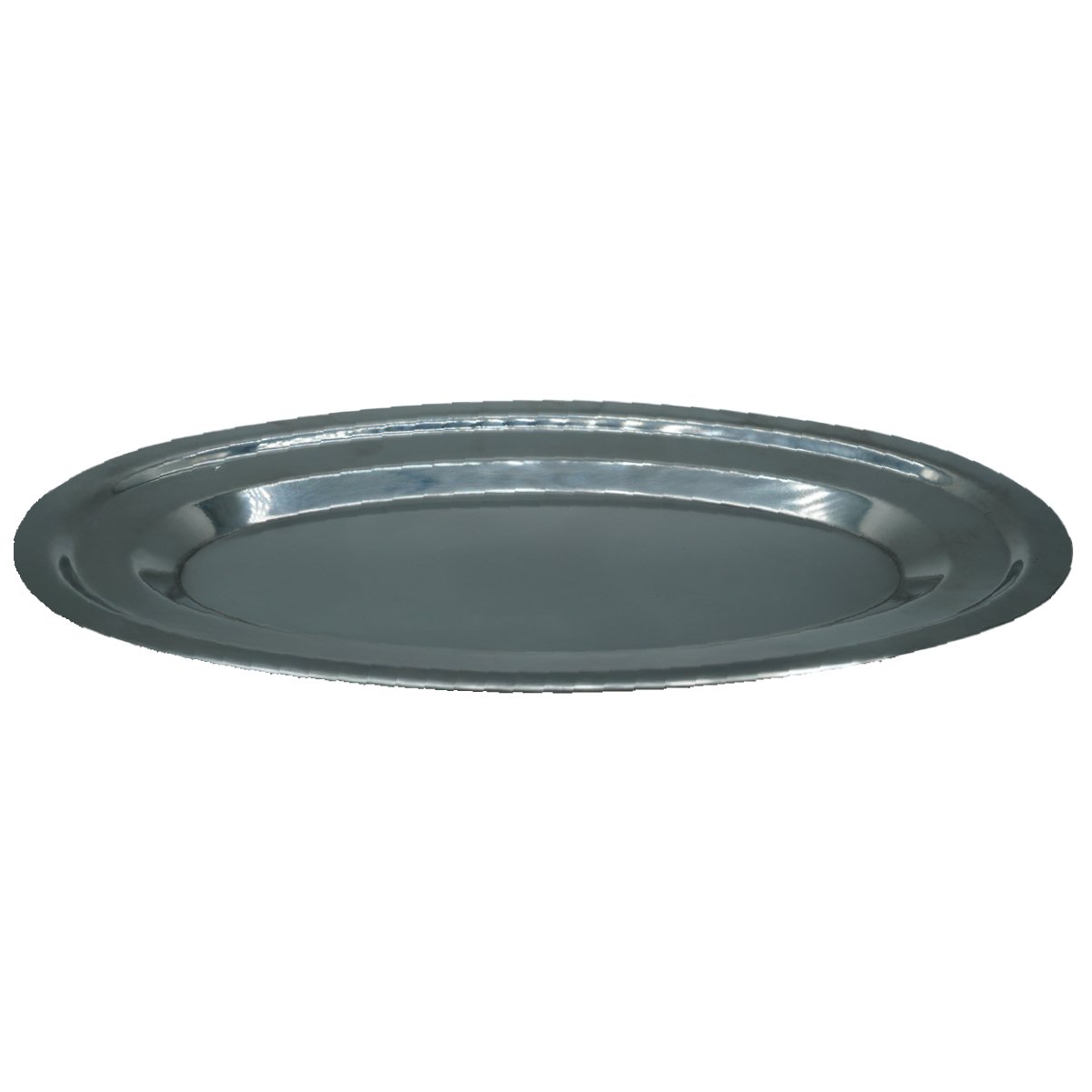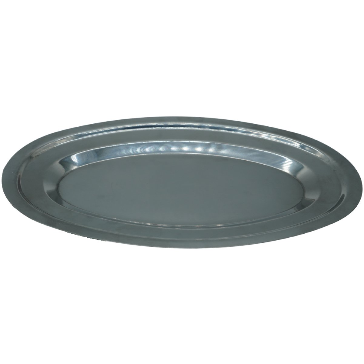 Platina de acero inoxidable de diseño simple y funcional, ideal para el servicio gastronómico. Su material resistente la hace perfecta para presentar alimentos, entradas o acompañamientos en bares, restaurantes o parrillas.