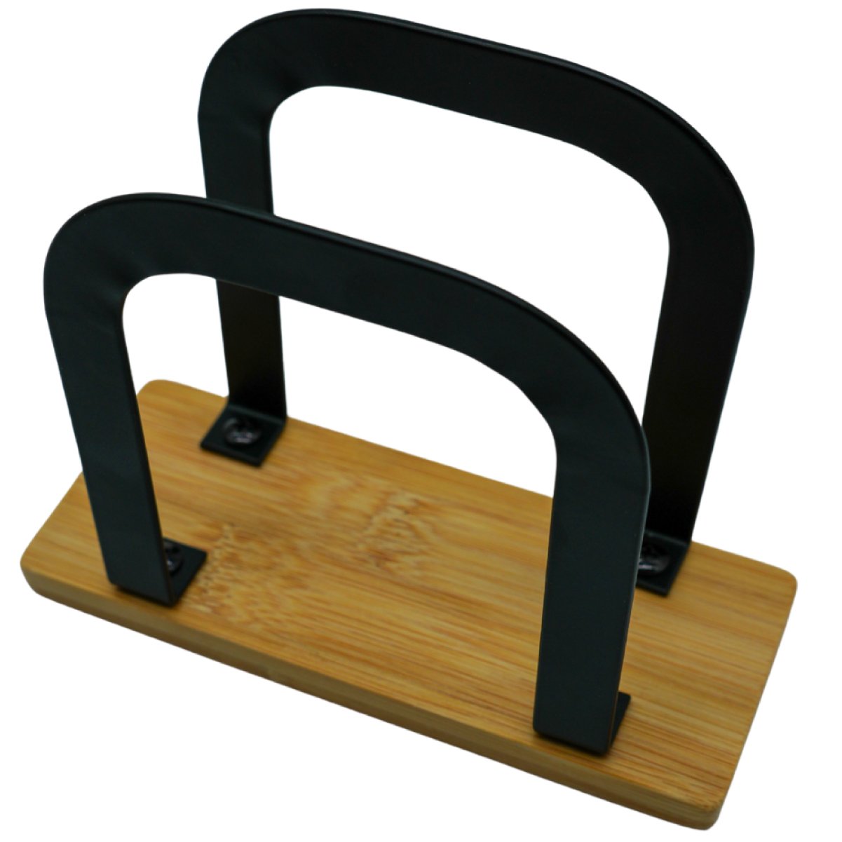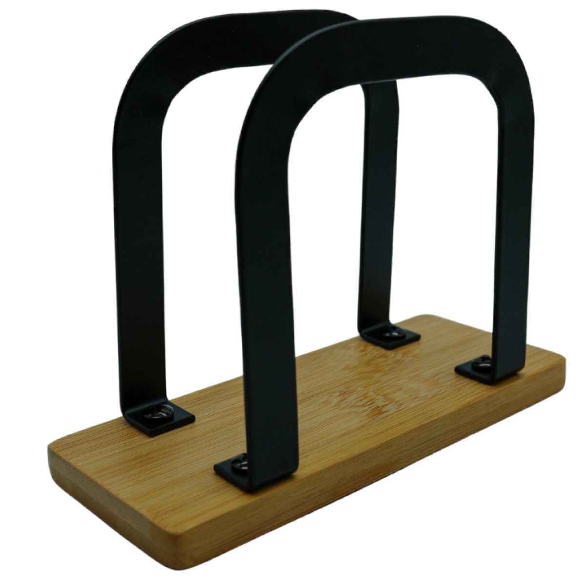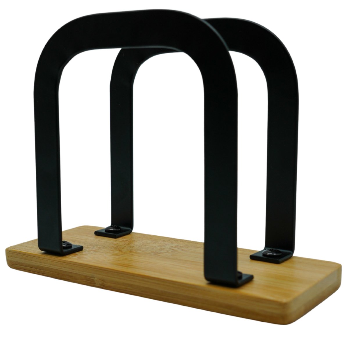 Diseño moderno y elegante que combina madera de bamboo con estructura de acero negro. Ideal para mesas de bares, restaurantes o para sumar un toque sofisticado en el hogar, manteniendo las servilletas siempre organizadas.